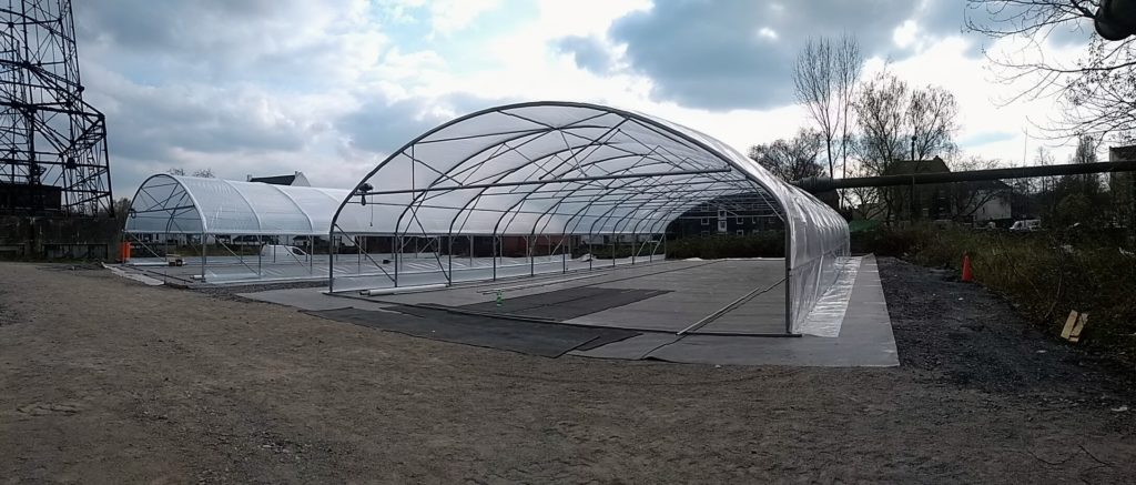 Nach langer Planungs- und Baugenehmigungsphase ist es nun endlich geschafft, die Gewächshäuser auf der Kokerei Hansa stehen. In kürze wird hier eine Aquaponikanlage zu Forschungszwecken in Betrieb gehen.