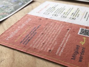 Die Besonderheit: Wir haben auf Samenpapier drucken lassen! Wenn ihr die Informationen absorbiert habt, könnt ihr den Flyer in die Erde bringen und eine kleine Blühwiese auf der Fensterbank entstehen lassen. Wenn ihr das macht, dann freuen wir uns natürlich riesig wenn ihr Fotos auf Twitter, Facebook und Insta postet. Gerne mit den Hashtags #Naturfelder und #NatureForRenewal. Letzteres ist das offizielle Hashtag des proGIreg Projekts, in dessen Rahmen wir aktiv sind.